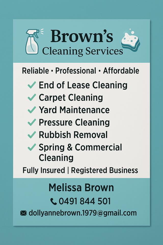 Melissa Brown provides a cleaning service to St George and Dirranbandi Customers.